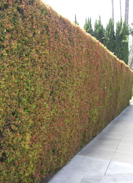 The fastest growing privacy hedge option commonly found in So Cal, up to 4ft in height per year in good conditions. Small glossy green leaves with a hip of red in the new growth. Small leaves make it an ideal option more precise manicured shape. Makes a great privacy hedge from 6-25ft tall, just prune as desired.