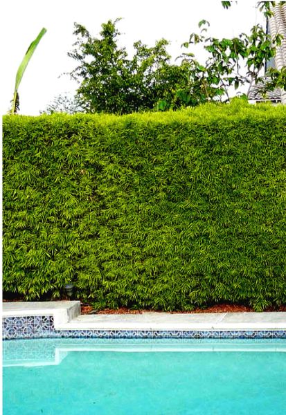 When planting a new hedge, don’t let the plant grow upward to the desired height immediately. Allow the plant to grow in 1-foot increments, then cut back 4 inches. This forces new limbs closer together, which will create that compact, dense look, without compromising health.