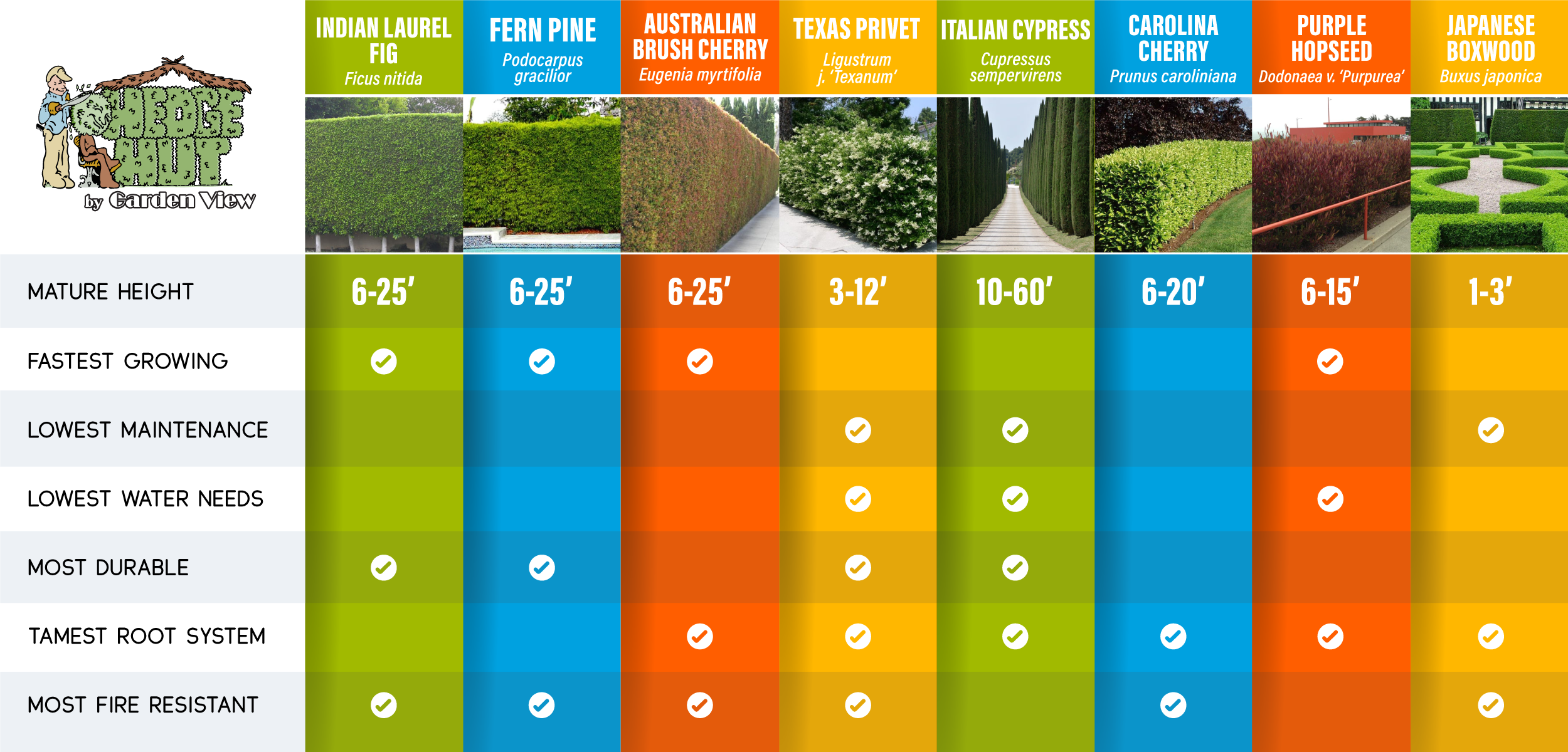 Most of our hedge varieties have similar water and sun requirements, so the main factors are growth height and your personal preferences.